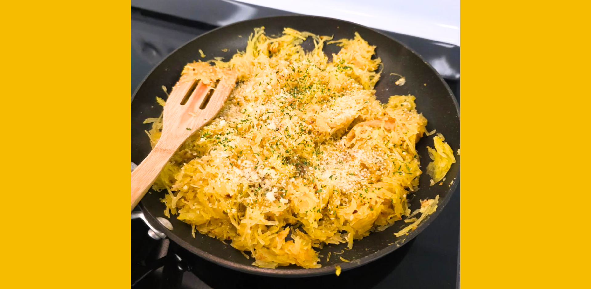 - 1 spaghetti squash, approximately 4 pounds, cut in half with seeds cleaned out