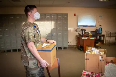 Pictured: Clint, a National Guardsman assigned to Sky Lakes distributing some of the first round of goody bags.