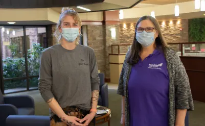 Pictured: Jen Ritter, Owner of the Daily Bagel, and Karen, EagleRidge’s Spanish teacher, came to Sky Lakes for the first delivery and distribution of the goody bags.