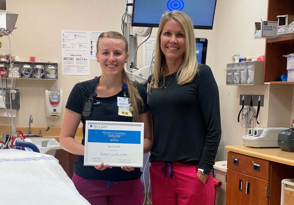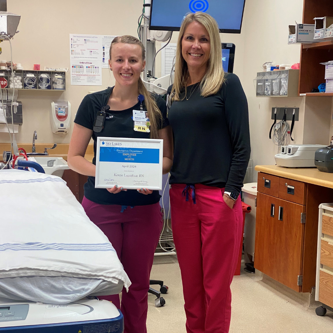 Please join us in congratulating Kenzie L., RN, as our April Emergency Department Employee of the Month! Kenzie has been a valuable member of the ED team for one year, and has been a Sky Lakes Medical Center team member for six and a half years. She is a Klamath Falls native and enjoys spending her free time outdoors with her three dogs.